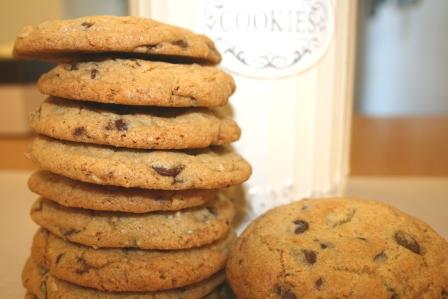 One of my pet peeves is Chocolate chip cookies that are too flat. Some people enjoy a flat crispy chocolate chip cookie, but I think the perfect one is thick and chunky, but also moist and chewy on the inside with lots of chocolate! I want to taste the chocolate but also the butter.